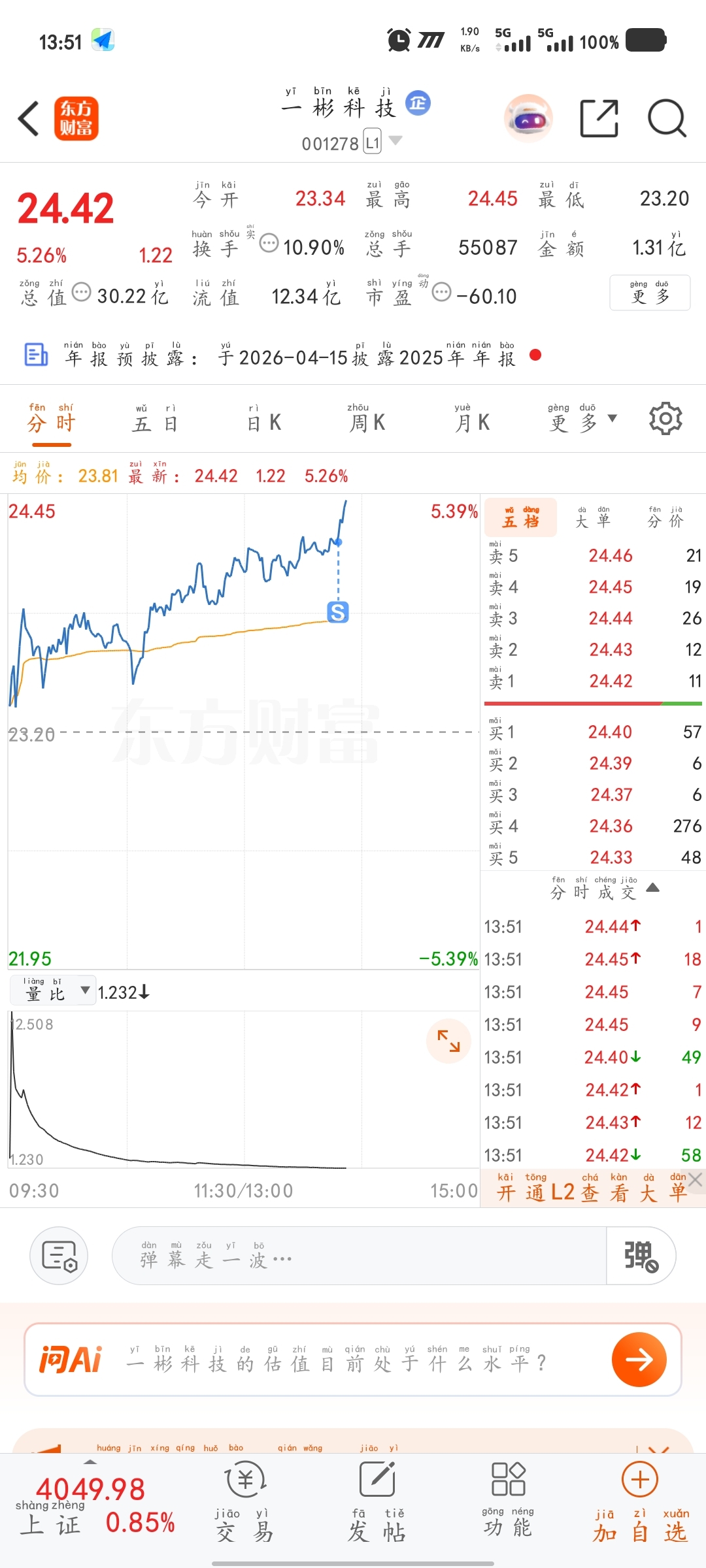 $一彬科技(SZ001278)$