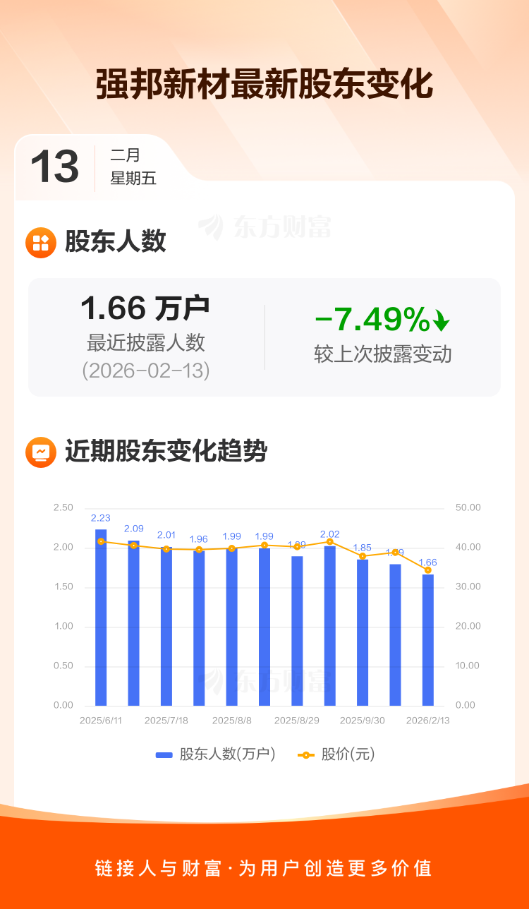 强邦新材:截至2月13日最新股东户数1.66万户,较上期减少7.49%