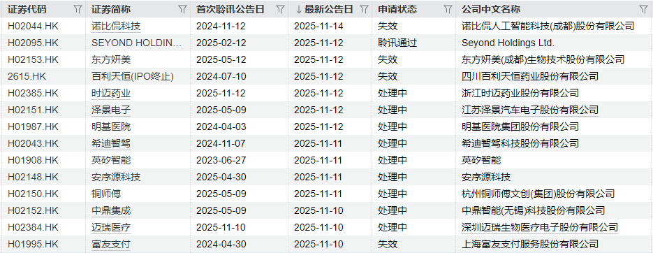 Seyond Holdings Ltd.聆讯通过。诺比侃人工智能科技(成都)股份有限公司、东方妍美(成都)生物技术股份有限公司、四川百利天恒药业股份有限公司、上海富友支付服务股份有限公司等4家的申请失效。