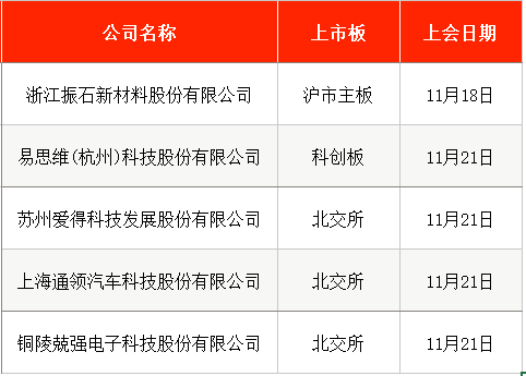 11月21日,北交所将审议苏州爱得科技发展股份有限公司(下称“爱得科技”)、上海通领汽车科技股份有限公司(下称“通领科技”)、铜陵兢强电子科技股份有限公司(下称“兢强科技”)等3家的首发事项。