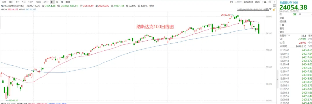 美联储一官员发表对人工智能大规模投入可能引发市场泡沫的言论,造成美股反弹受挫,再度大跌,且前期涨幅较大的内存芯片和AI个股跌幅较大,业绩较好的个股则相对强势。