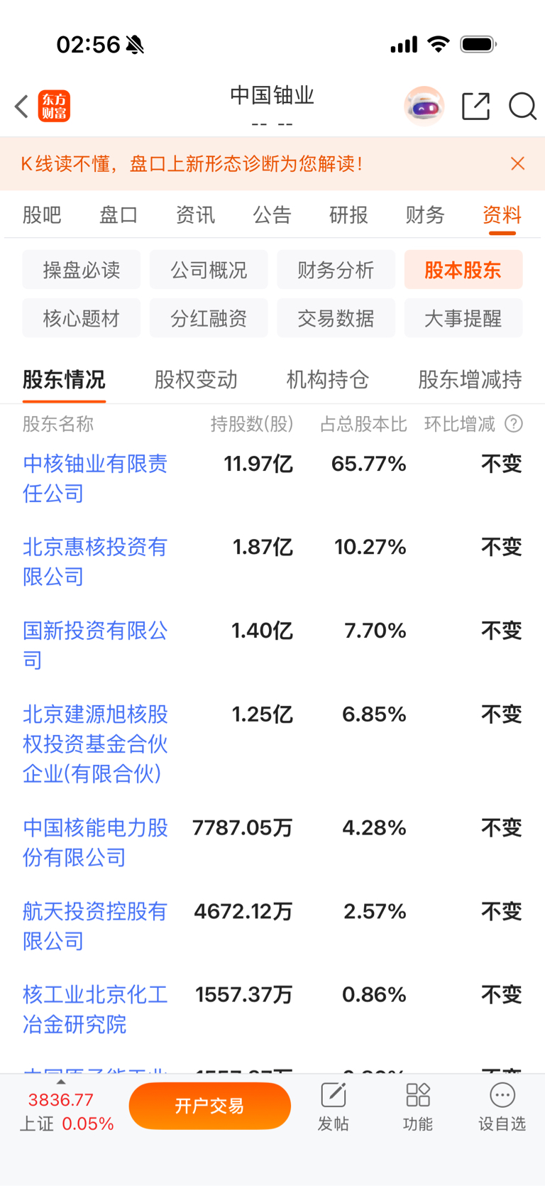 $中国铀业(SZ001280)$ 前2家就占75%股本了,流通股本这么少,爆炒看着吧,绝对有大户爆买锁仓,这种资源可不是一般的小金属,摩尔中签不一定比他赚得多,拭目以待