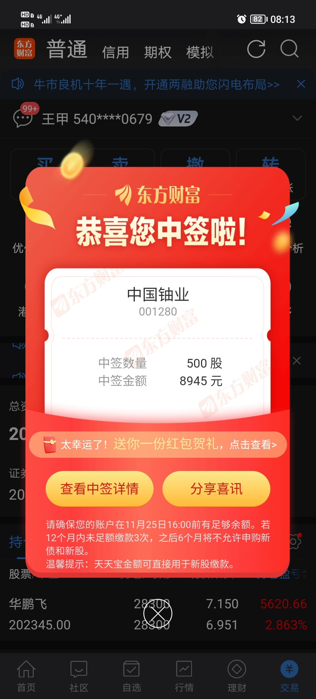$中国铀业(SZ001280)$ 我中了一签,两万卖有人要吗?