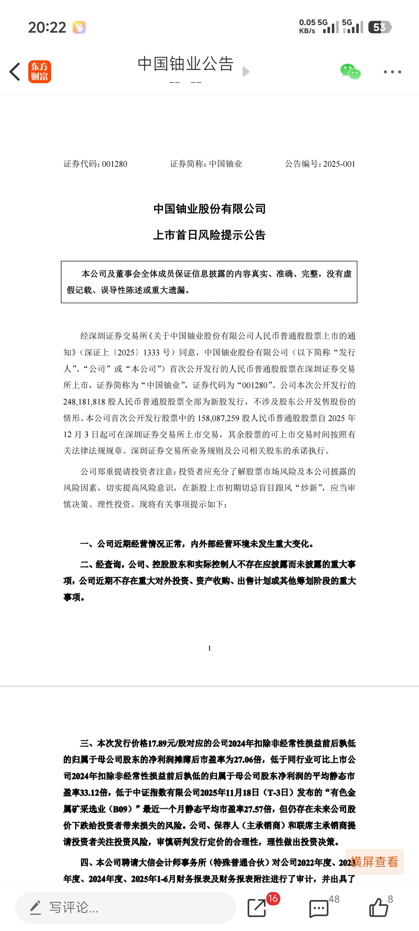 有风险,看见没公司出来公告了