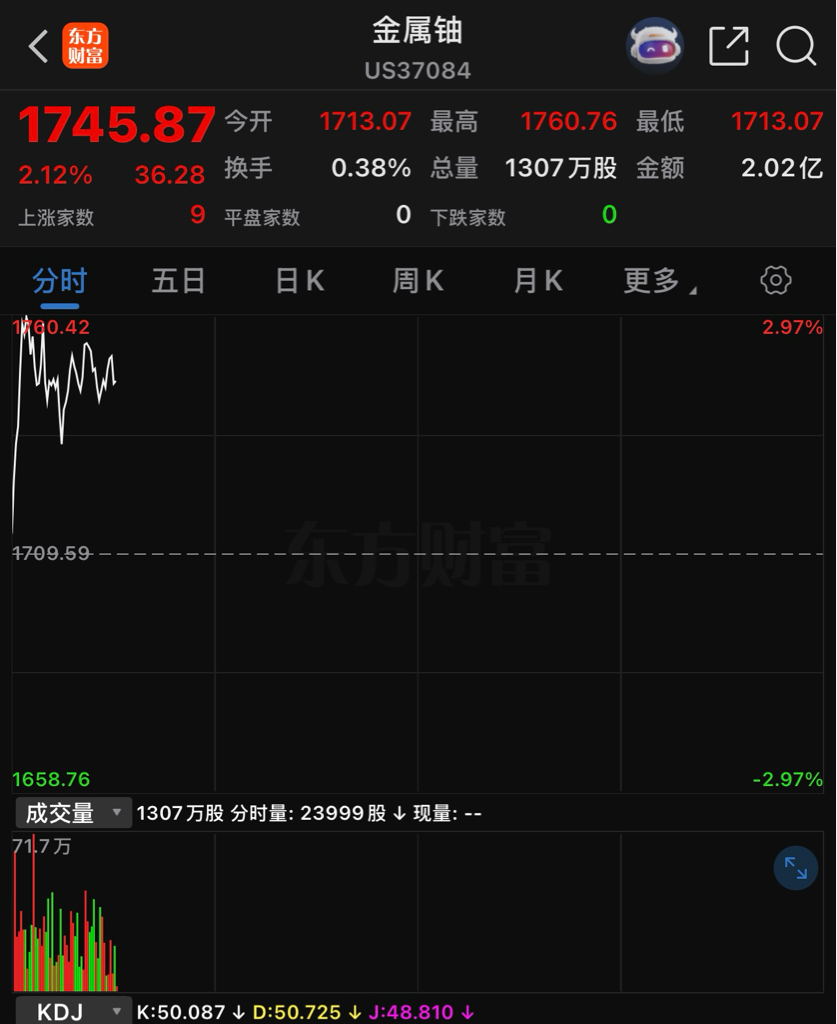 $中国铀业(SZ001280)$ 老美铀大涨,,,