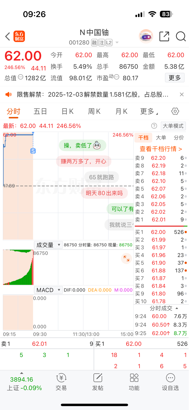 $N中国铀(SZ001280)$ 撤单未成功,祝大家发财