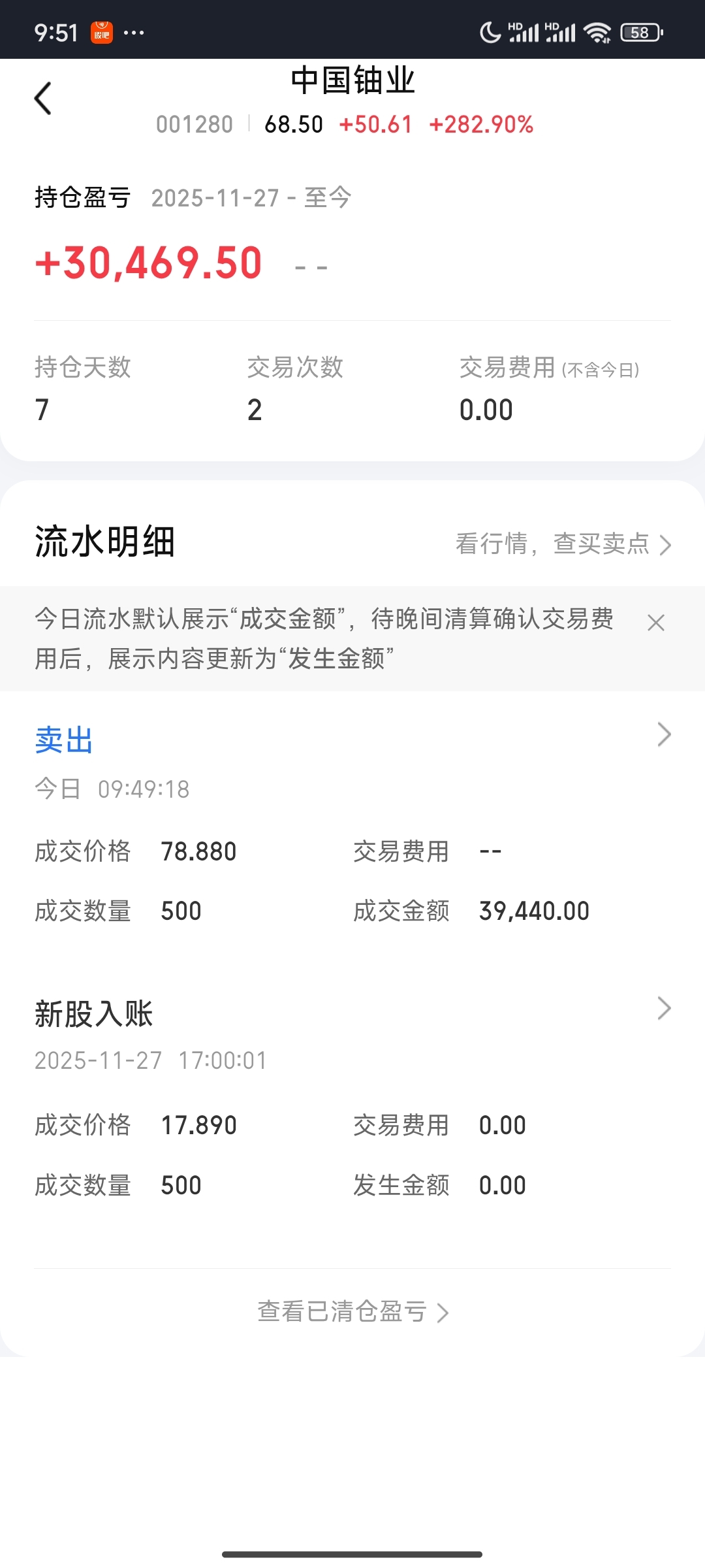$N中国铀(SZ001280)$ 78.88卖了,赚了3w