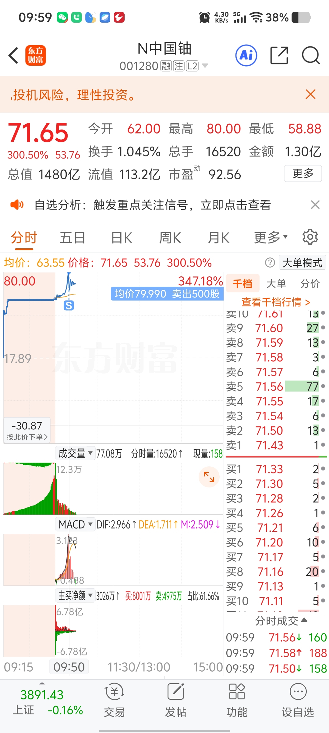 $N中国铀(SZ001280)$ 不知道亏不亏,后续还会不会涨#实盘记录# #强势机会# #炒股日记#