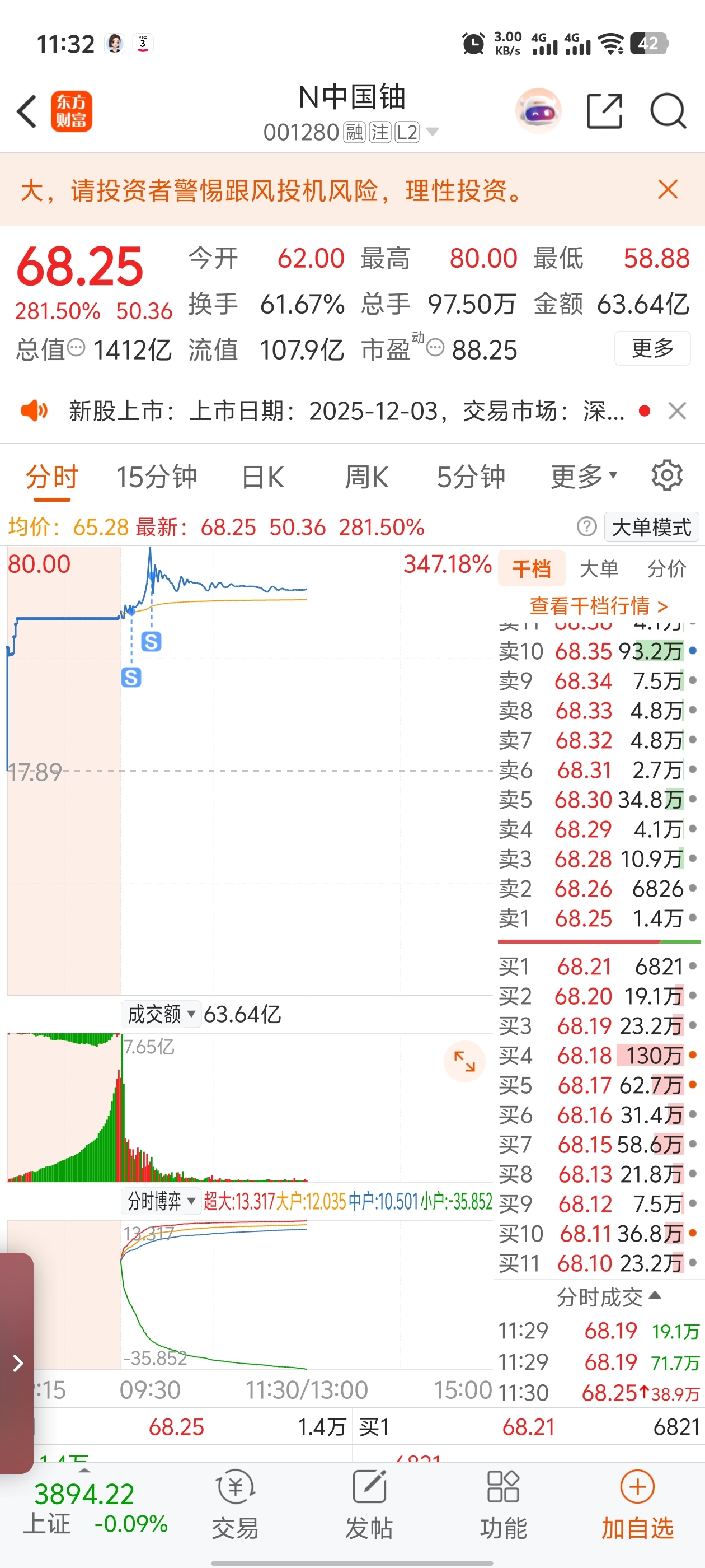 $N中国铀(SZ001280)$ 只赚取认知内的收益