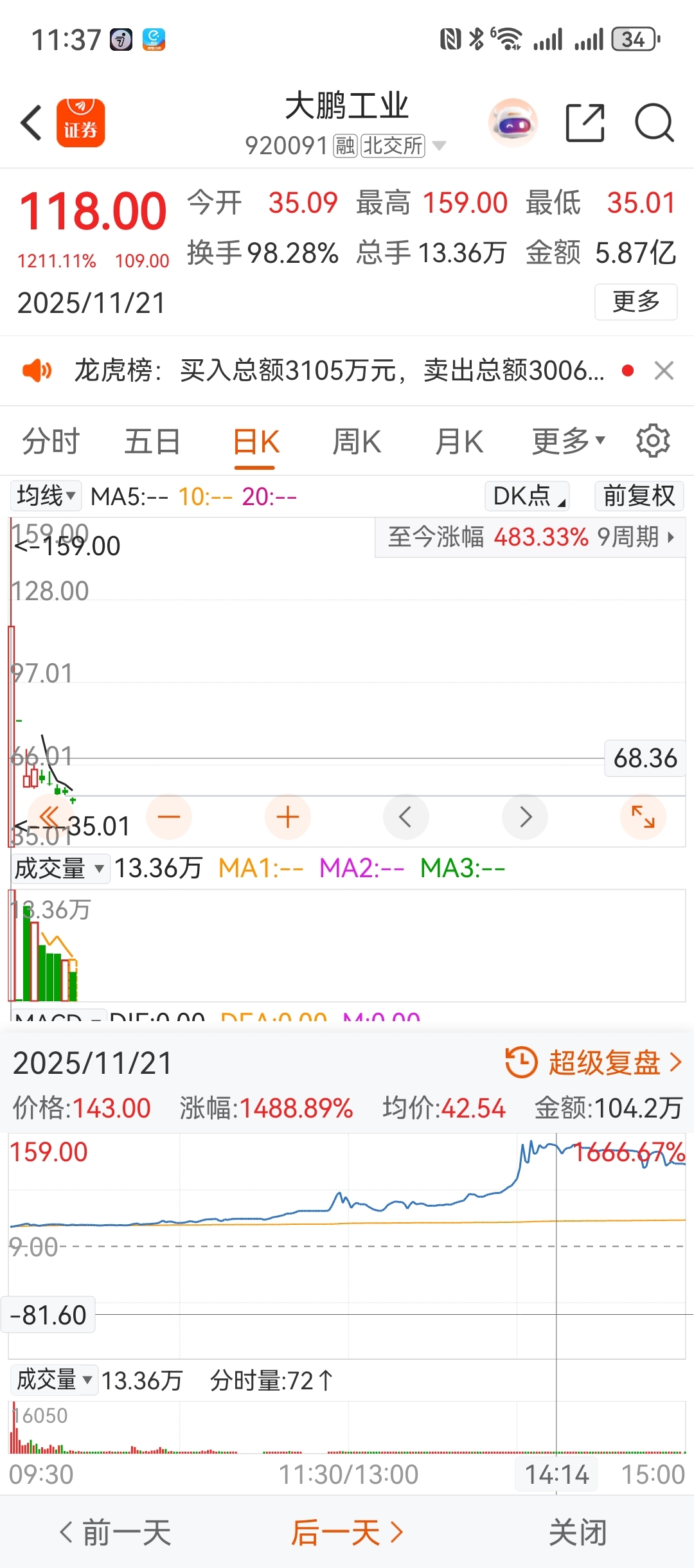 $N中国铀(SZ001280)$ 大鹏第一天下午飞涨1000多