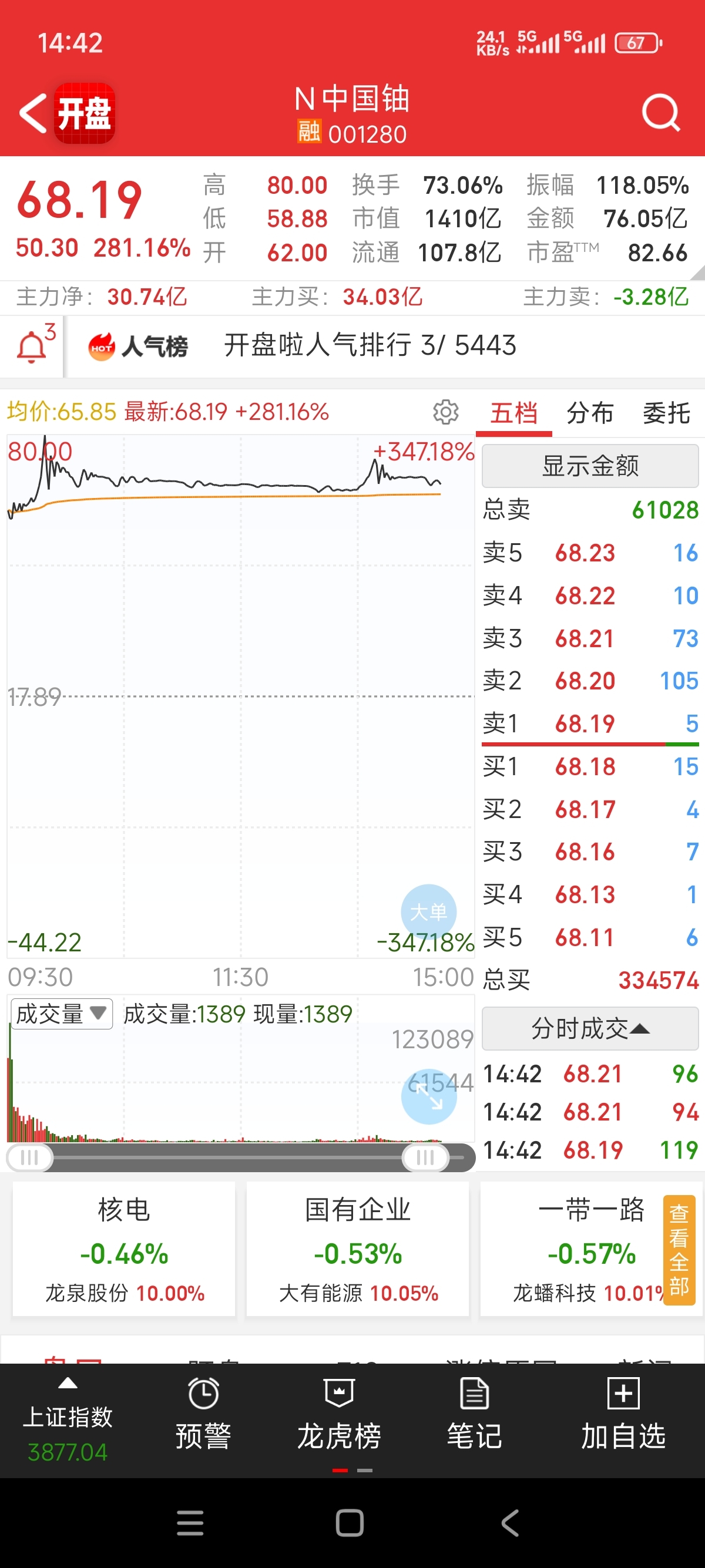 $N中国铀(SZ001280)$ 主力净流入30个亿