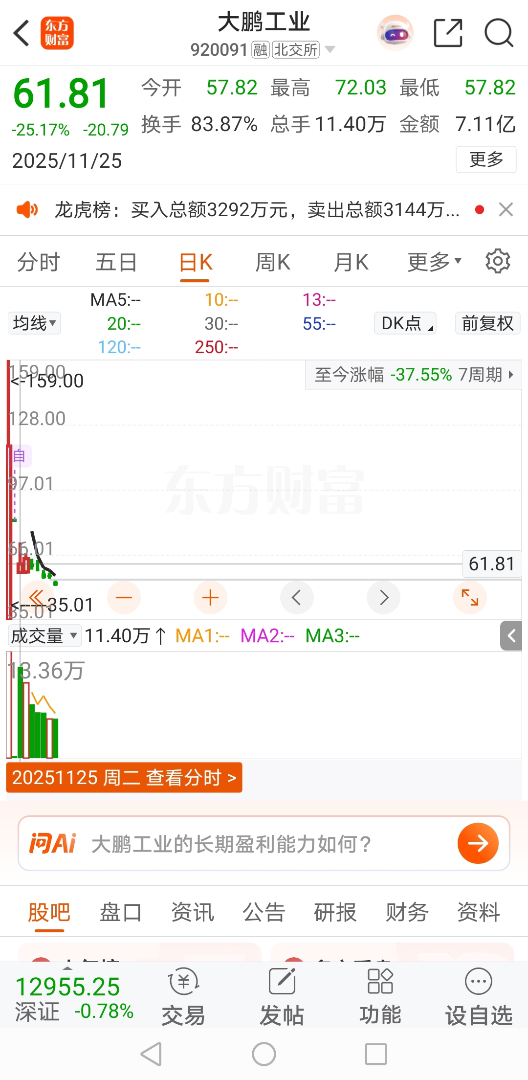 $N中国铀(SZ001280)$ 参考大鹏工业,地二天低开25%