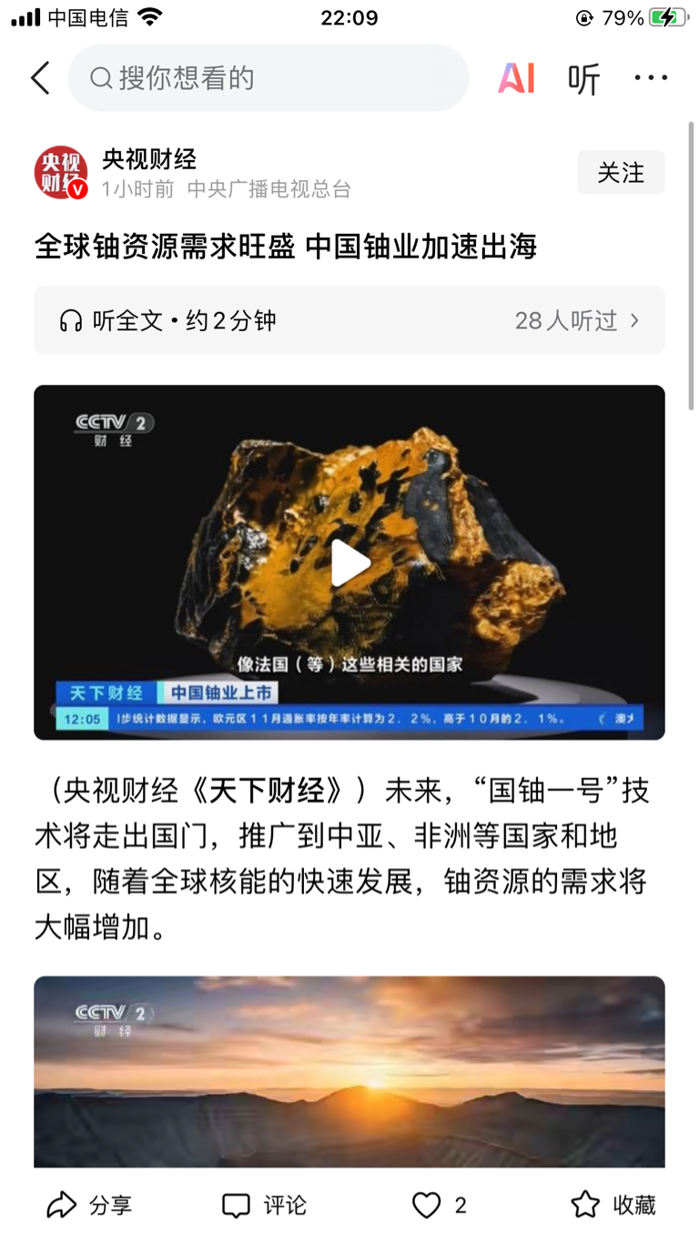 $N中国铀(SZ001280)$ 央视新闻