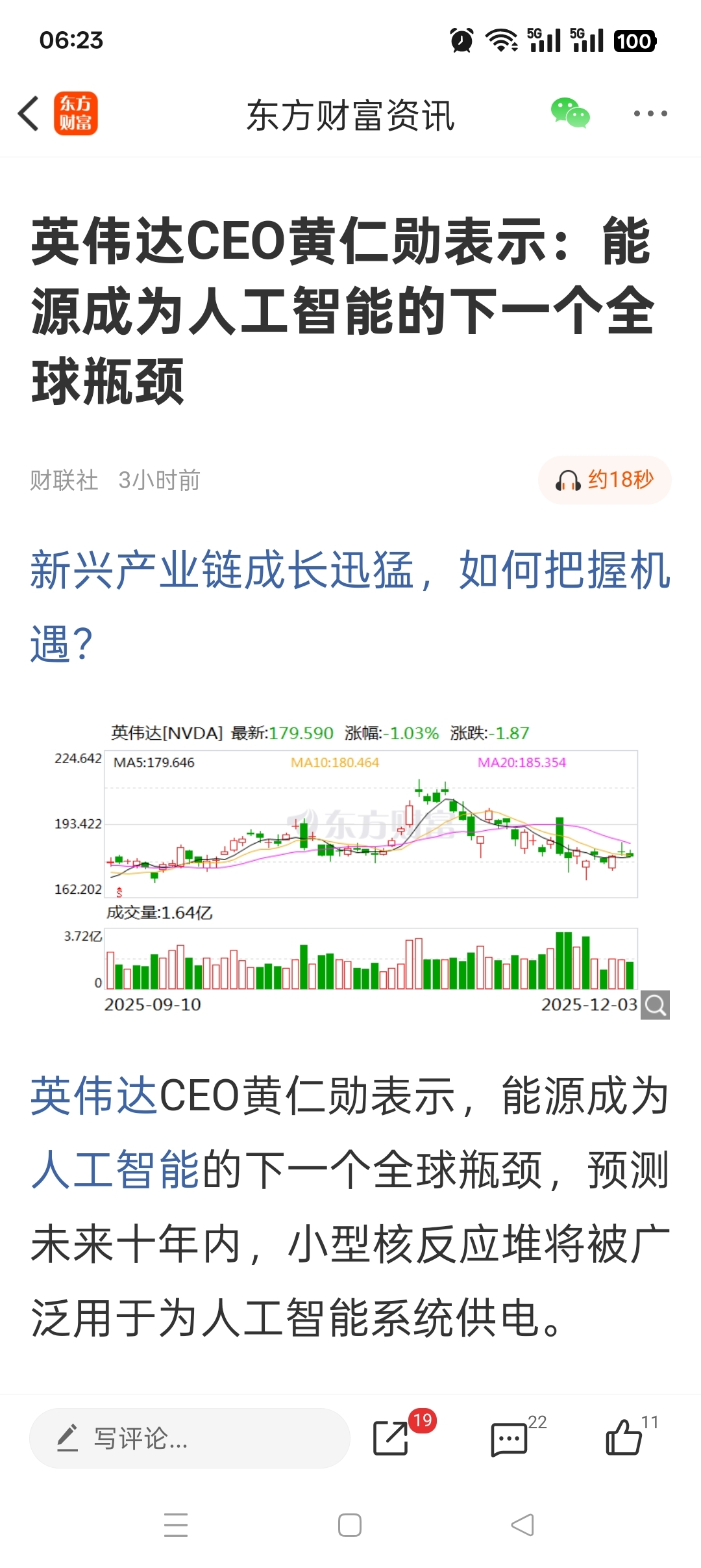 英伟达CEO黄仁勋表示,能源成为人工智能的下一个全球瓶颈,预测未来十年内,小型核
