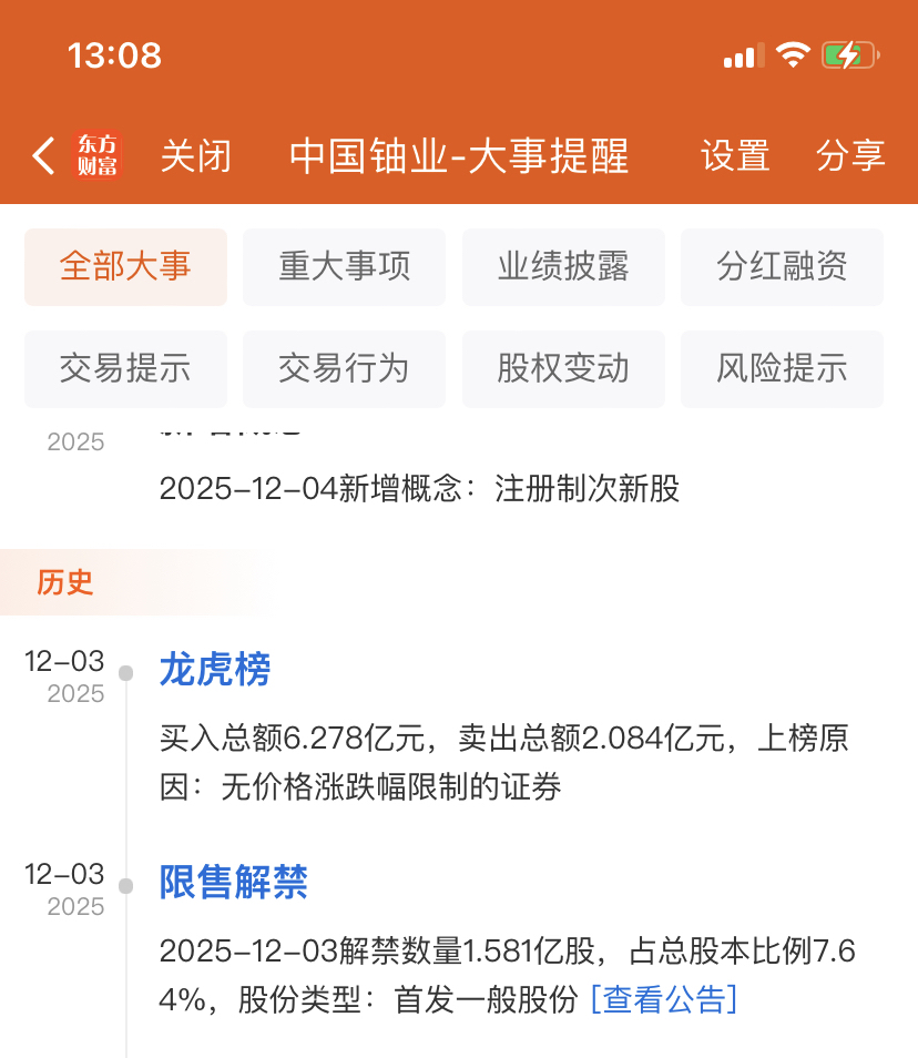 $C中国铀(SZ001280)$ 这个有意思,上市就解禁,真牛批呀!那就是说:小的们送点福利给你吗?