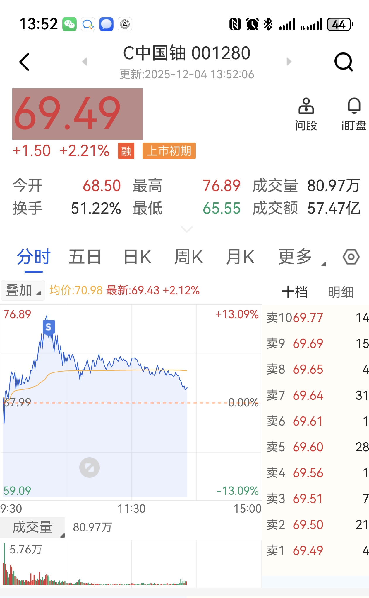 $C中国铀(SZ001280)$ 左天67进的今天卖了,风险太大,不敢拿