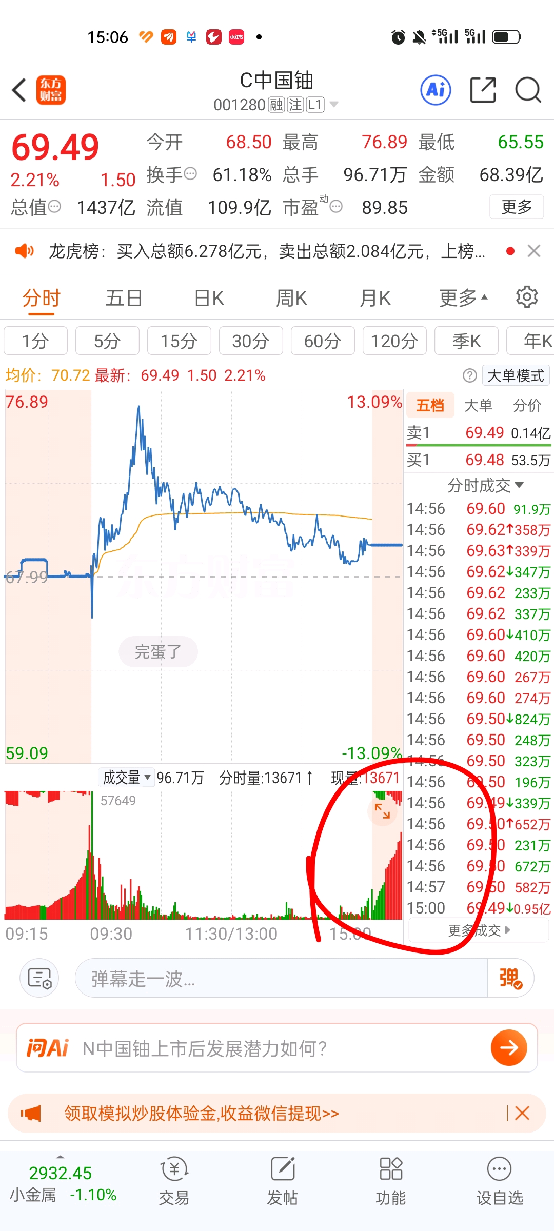 $C中国铀(SZ001280)$ 尾盘集合竞价是在抢筹吗?不懂就问!