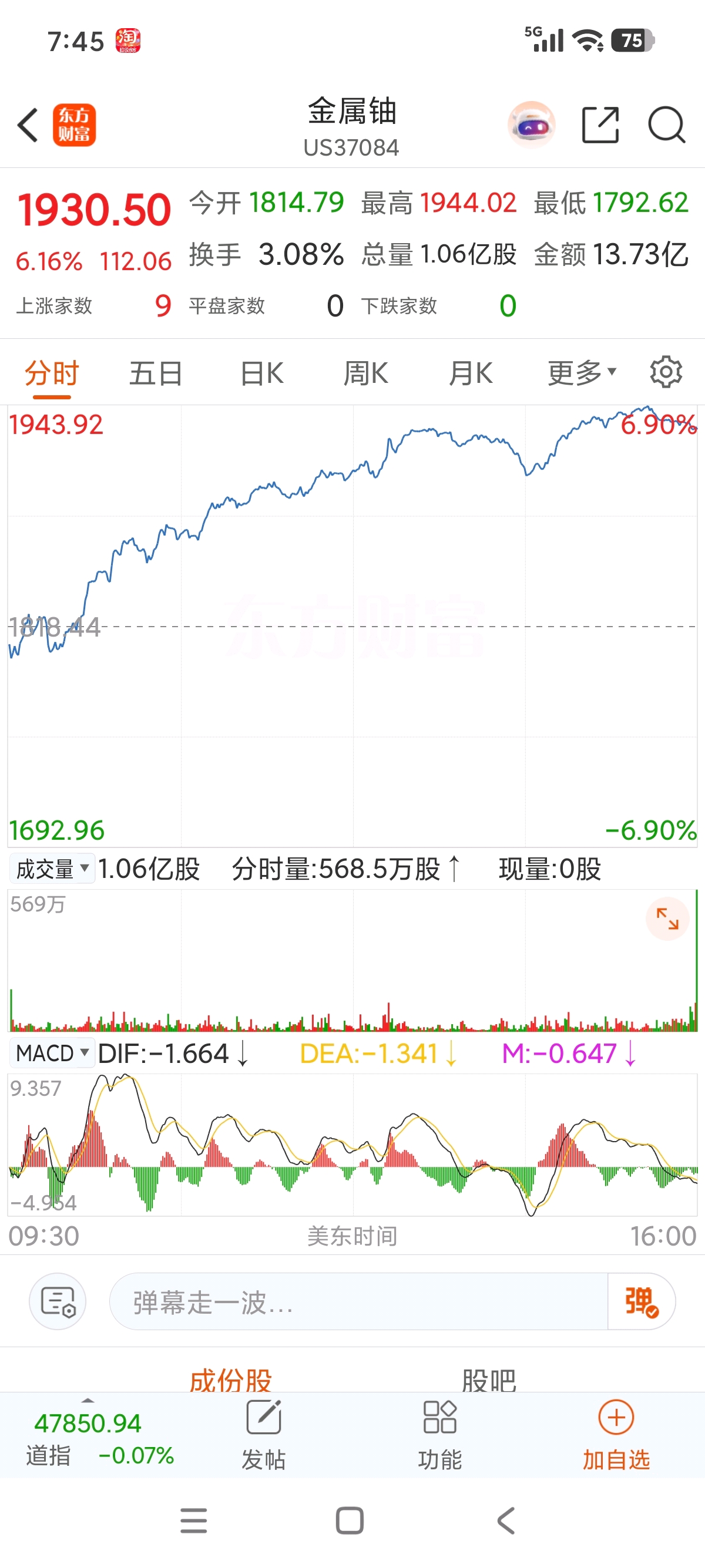 昨夜国际,金属铀,核电核能,爆涨,量身定制的,今天如果不高开高走涨停,这辈子估计