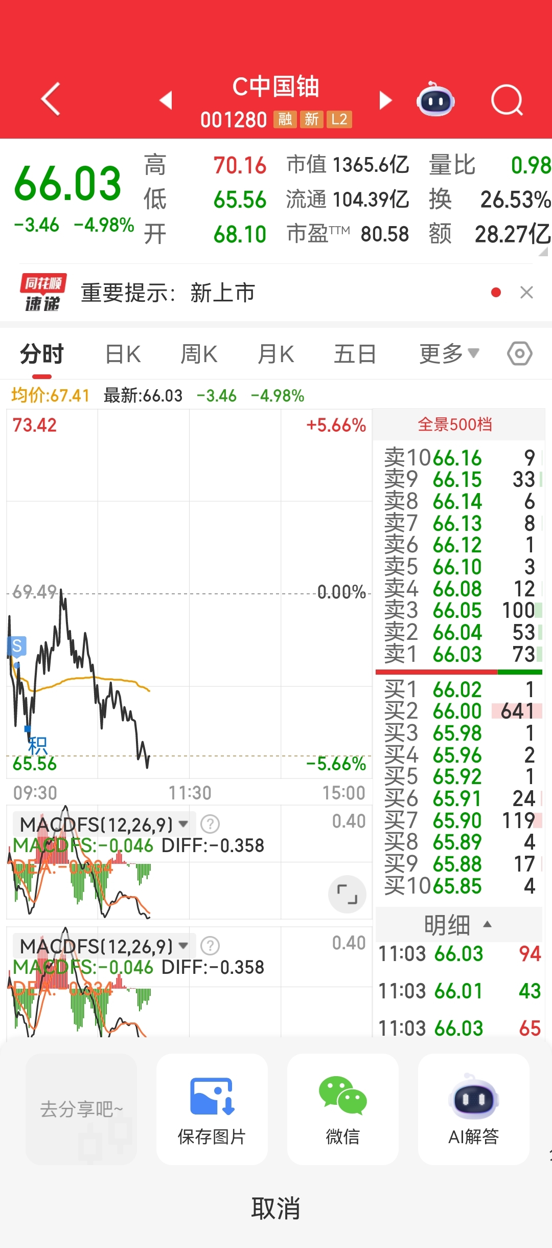 $C中国铀(SZ001280)$ 幸亏卖了