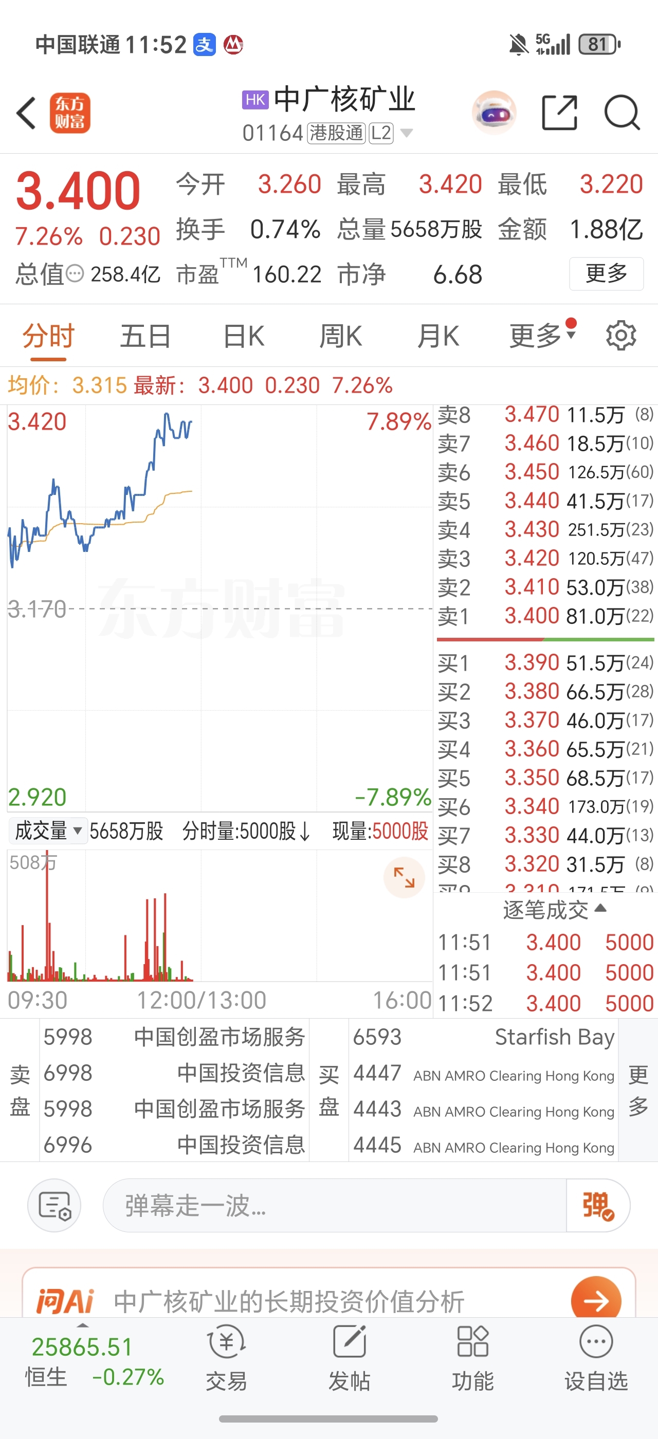 $C中国铀(SZ001280)$ 港股铀,都能给pe160!A股底吸就好咯
