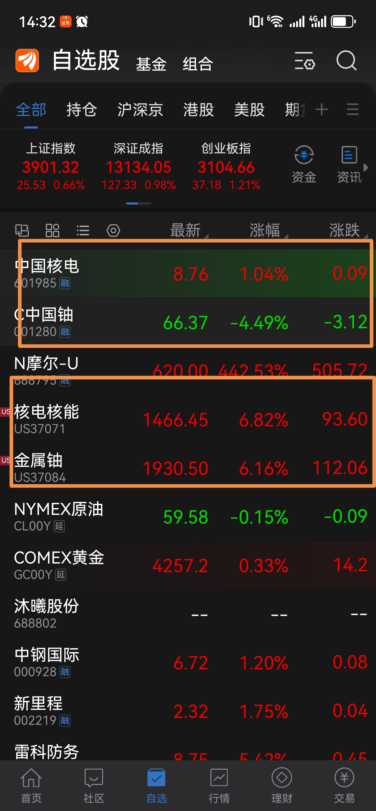 浓缩铀全球暴涨,中国铀118元以下安心持有。