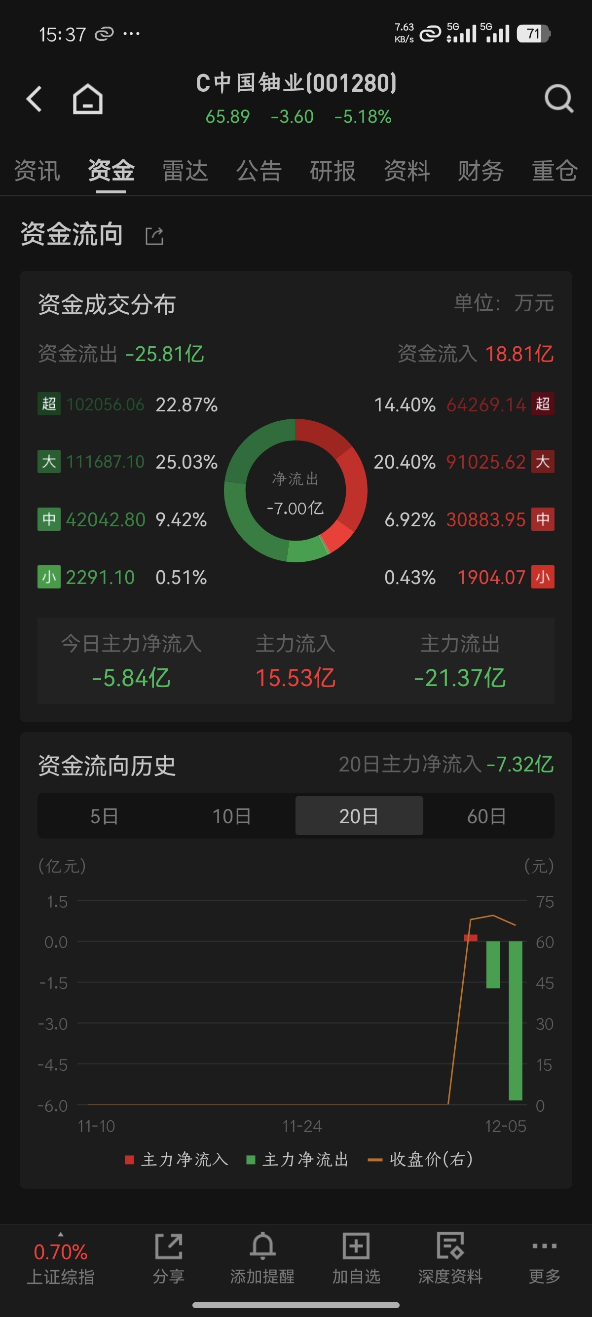 $C中国铀(SZ001280)$ 为什么这里看的是跑了五个亿