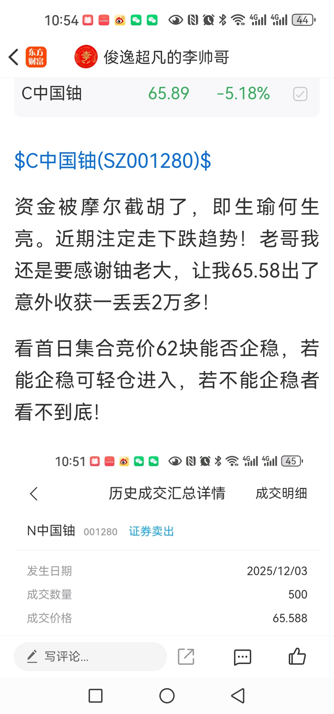 资金被摩尔截胡了,即生瑜何生亮。近期注定走下跌趋势!老哥我还是要感谢铀老大,让我65.58出了意外收获一丢丢2万多!