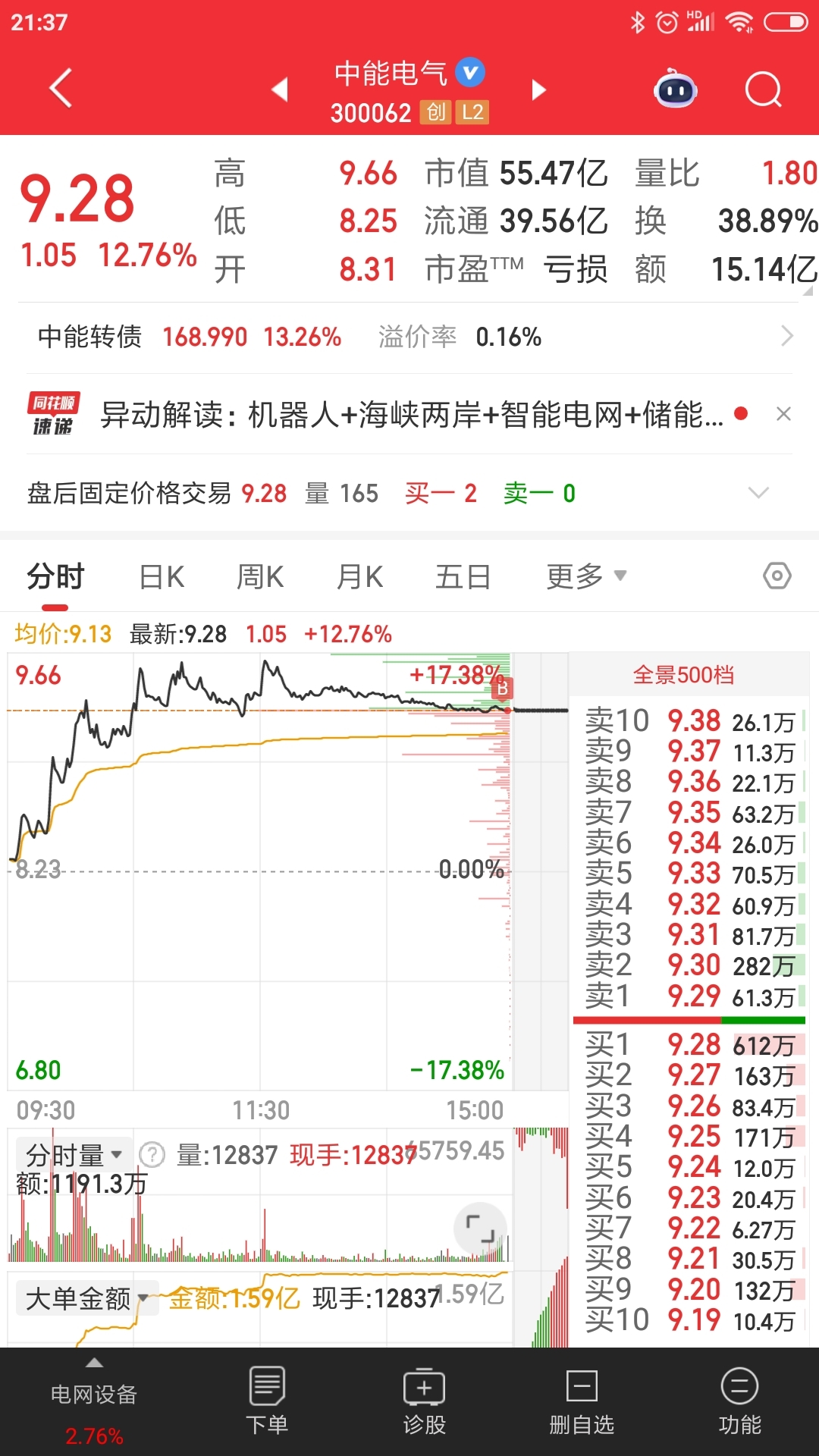 尾盘买了中国铀,剩下的钱买了几手中能电气,中能电气周一要一字板,中国铀不知道啥情