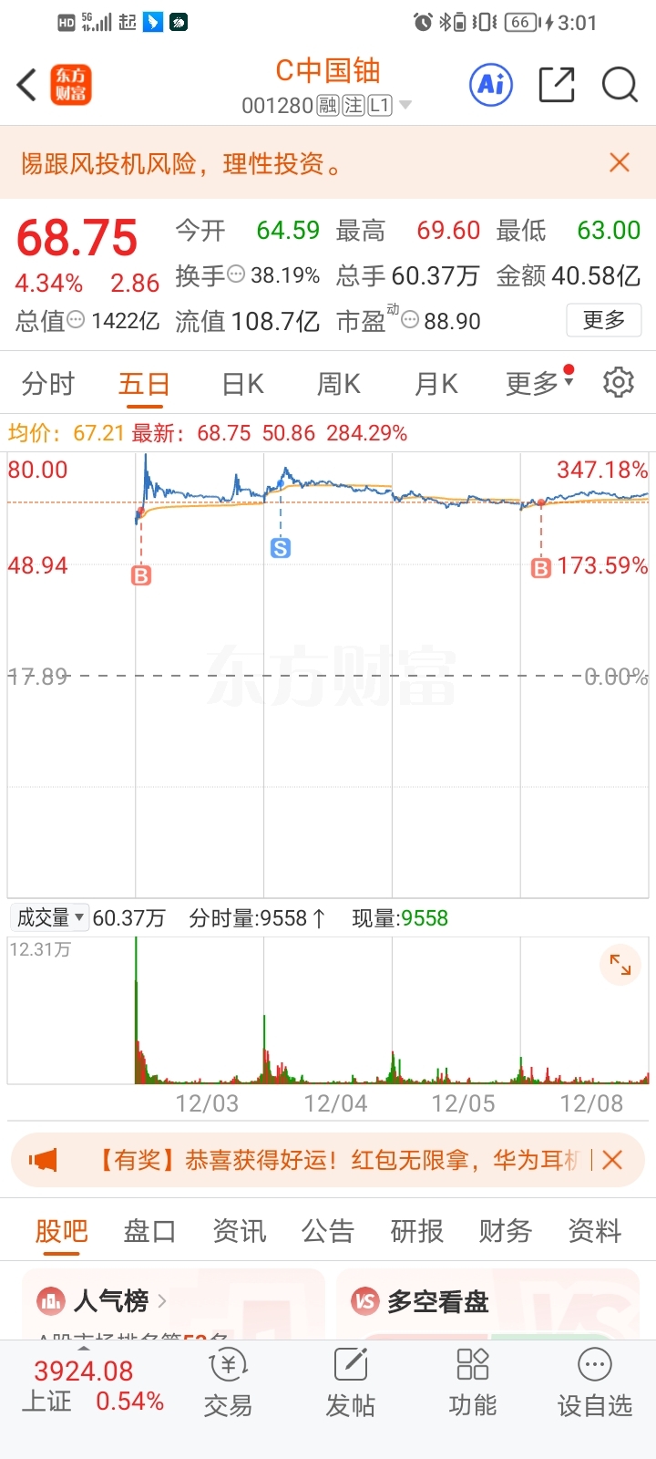 $C中国铀(SZ001280)$ 我又来了。明天吃大肉兄弟们