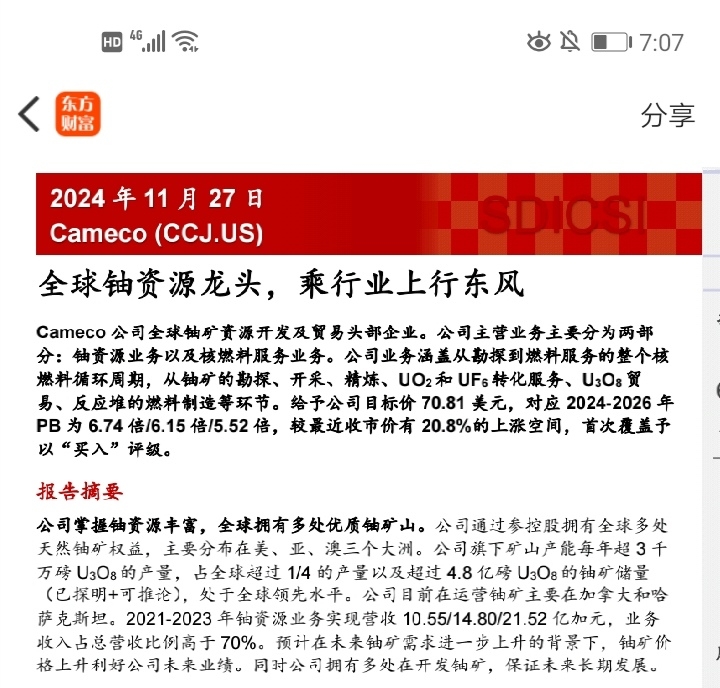 001280的铀矿储量是卡梅科的12.86倍,收入明显高于卡梅科!但目前0012
