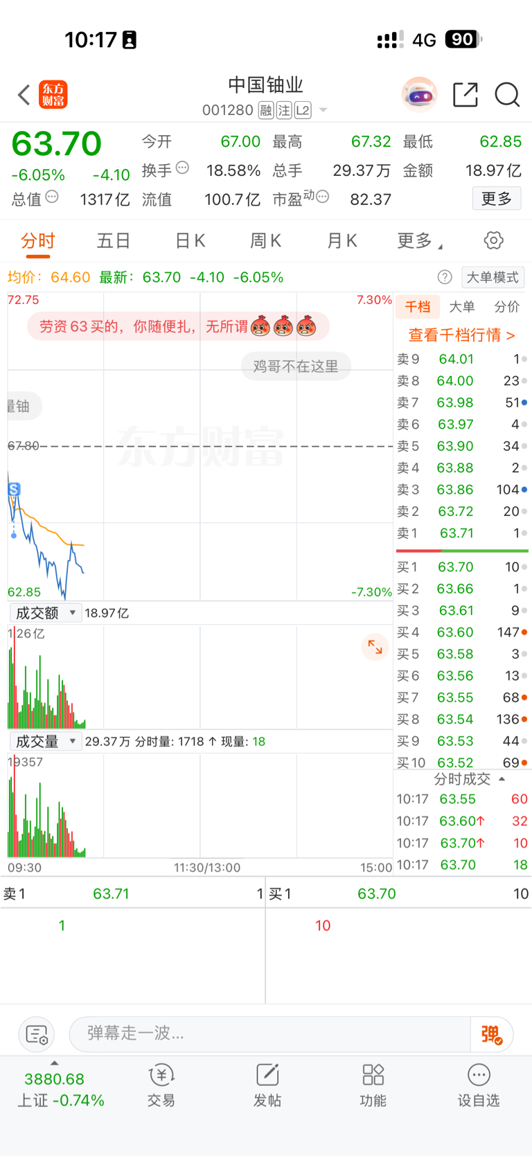 $中国铀业(SZ001280)$ 难道有很多人买卖点设置的和我一样?