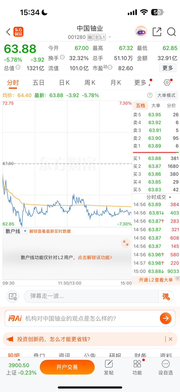 · 股价表现:尾盘最终收于 63.88元,当日下跌 -5.78%。