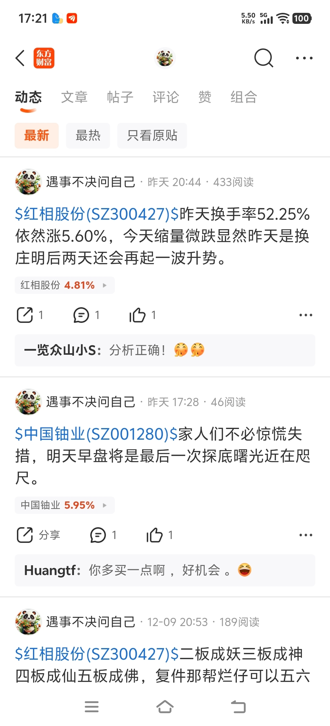 $中国铀业(SZ001280)$ 今天这两只票都被我精准介入,中国铀业62.70元,红相股份12.75元。