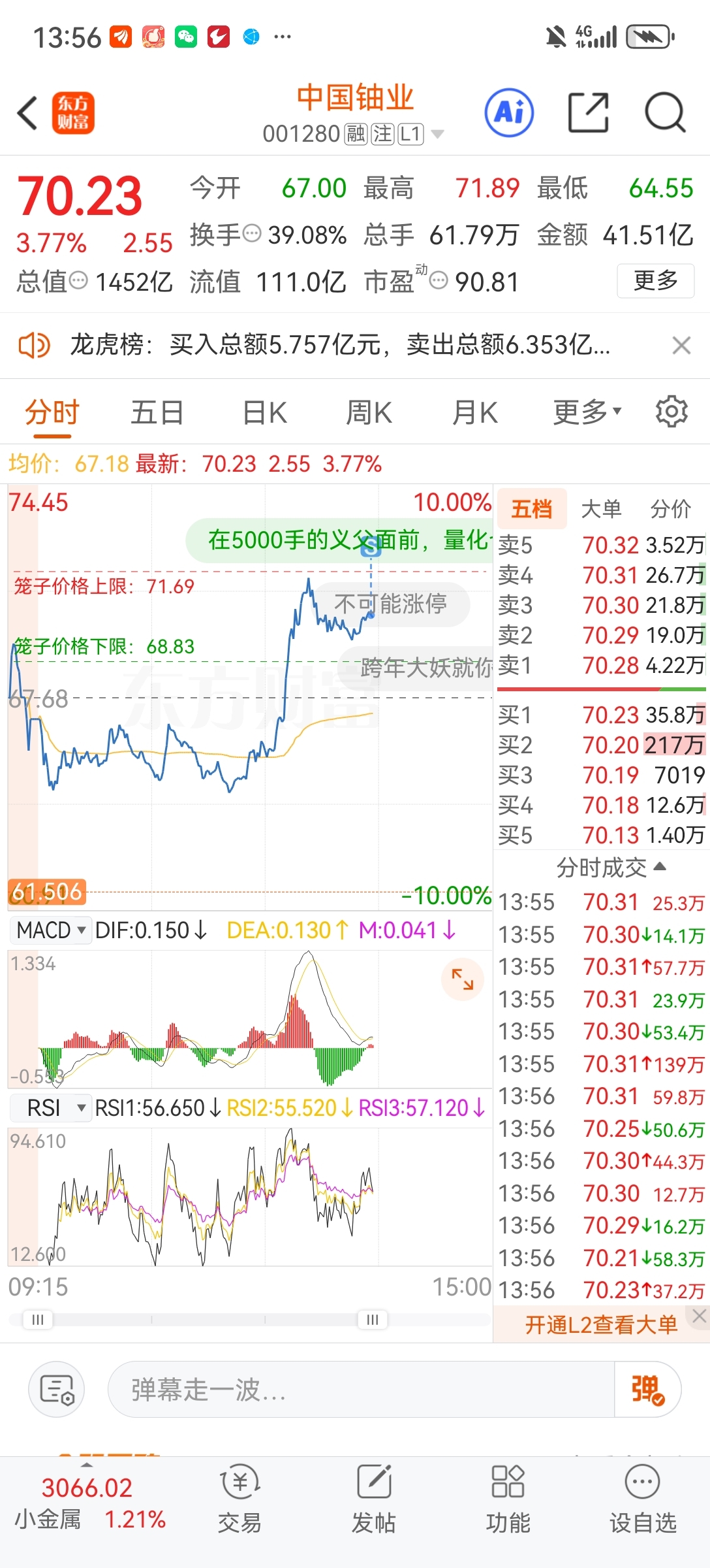 $中国铀业(SZ001280)$ 走了走了主力快拉吧