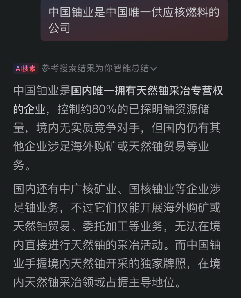 $中国铀业(SZ001280)$ AI介绍的正确吗?