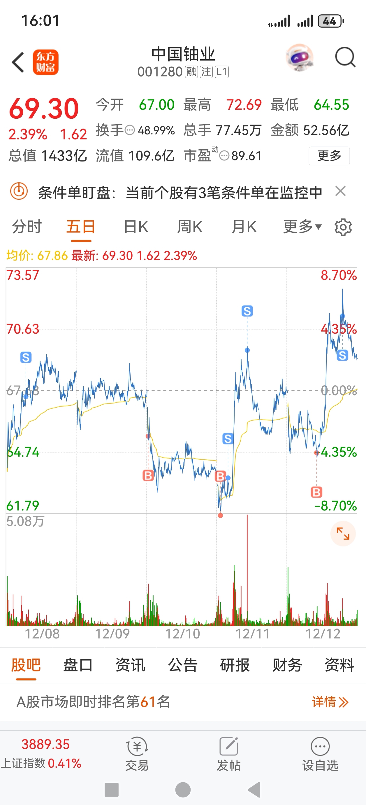 $中国铀业(SZ001280)$ 不管涨与跌,只想保持这状态