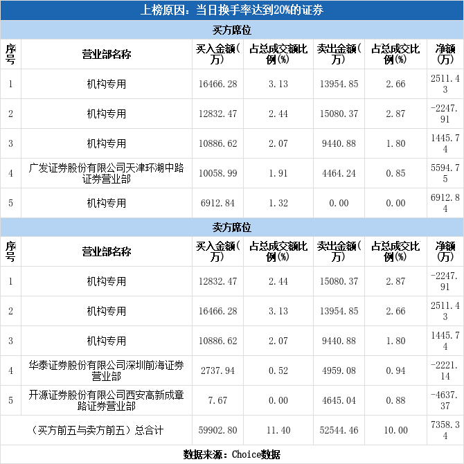 深交所2025年12月12日交易公开信息显示,中国铀业因属于当日换手率达到20%的证券而登上龙虎榜。中国铀业当日报收69.30元,涨跌幅为2.39%,换手率48.99%,振幅12.03%,成交额52.56亿元。