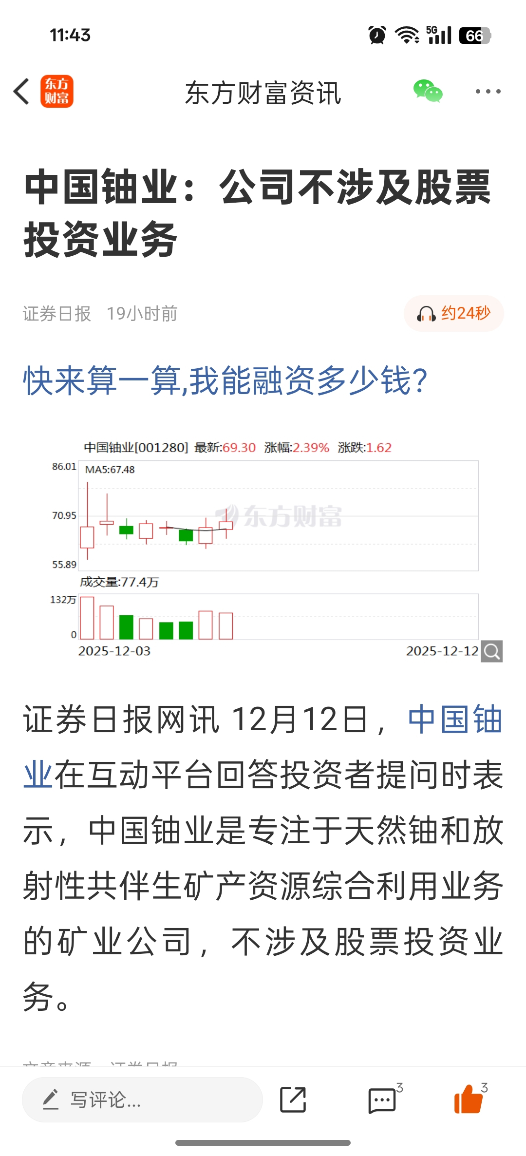 $中国铀业(SZ001280)$ 挣不挣钱的放一边,兄弟们快来给董秘点赞!