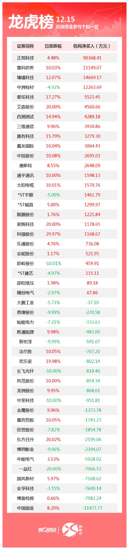 龙虎榜丨机构今日买入这25股 卖出中国铀业1.15亿元
