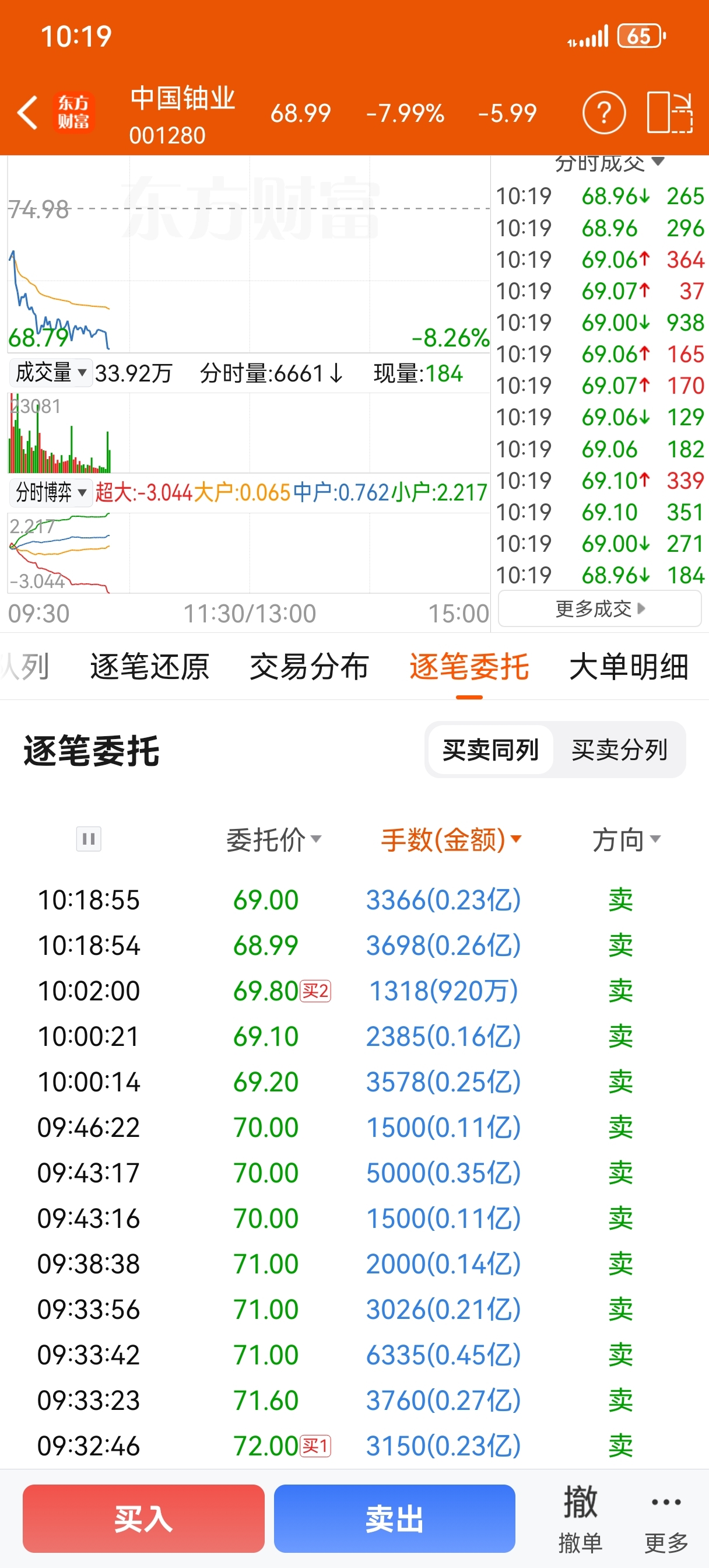 $中国铀业(SZ001280)$ 马上封死跌停,游资割肉