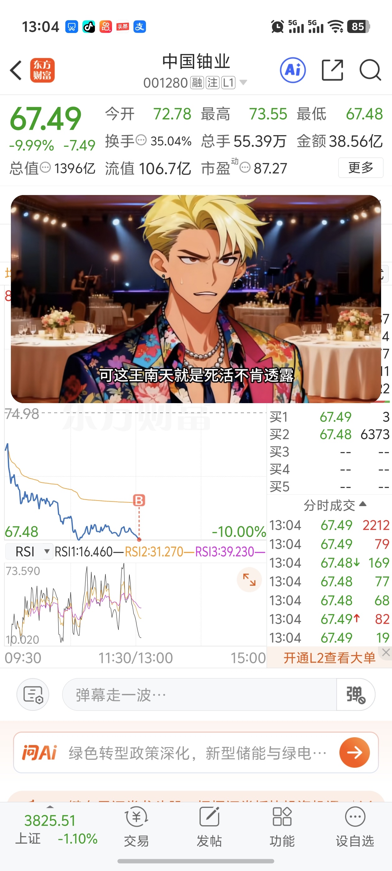 $中国铀业(SZ001280)$ 这个点买,能收获个地天嘛