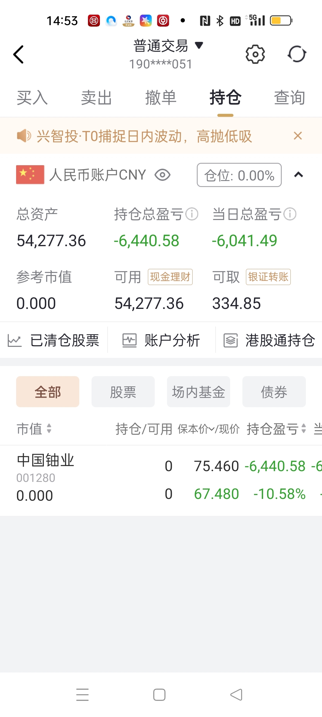 $中国铀业(SZ001280)$ 昨天无聊的75.50抢进来800股,今天跌停板清仓了