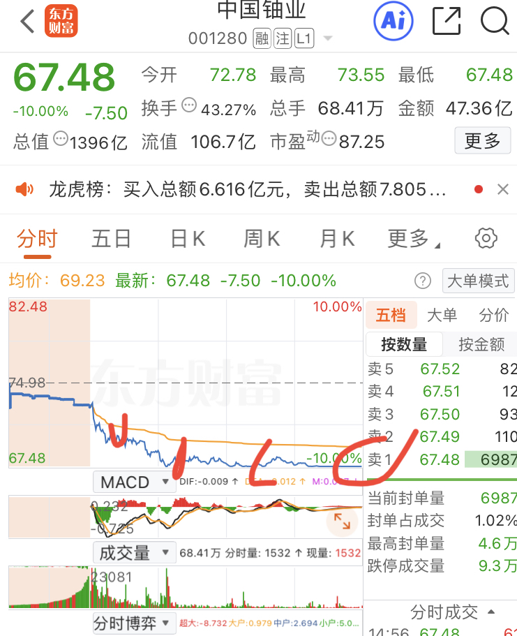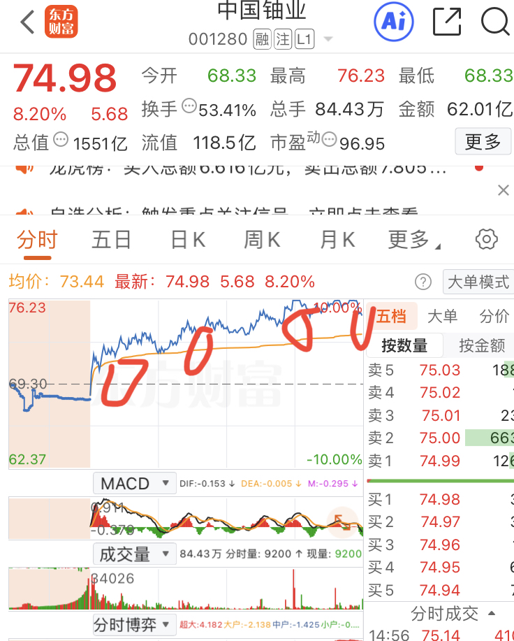 $中国铀业(SZ001280)$ 前一个交易日和今天分时图比较。倒着来!!!