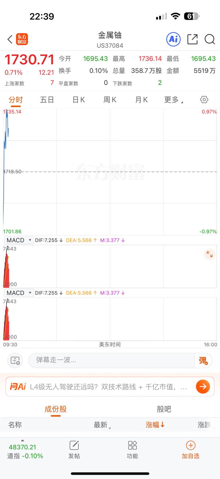 温馨提示: 1.根据《证券法》规定,禁止编造、传播虚假信息或者误导性信息,扰乱证券市场;2.用户在本社区发表的所有资料、言论等仅代表个人观点,与本网站立场无关,不对您构成任何投资建议。用户应基于自己的独立判断,自行决定证券投资并承担相应风险。《东方财富社区管理规定》