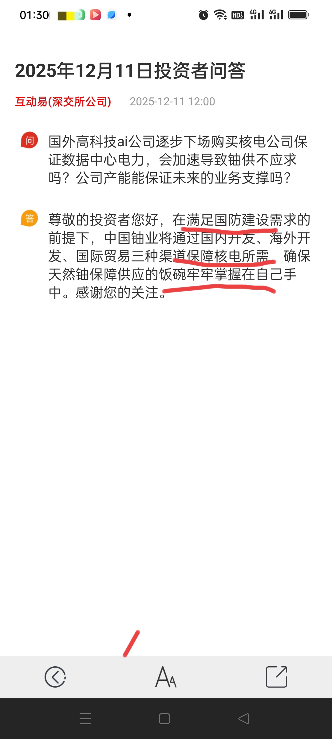 $中国铀业(SZ001280)$ 临近收盘出台打击虚假宣传和编造政策谣言的措施,一批业绩差靠讲故事的妖股收盘前一刻应声大跌,没来得及跑的大概率下周一要直接躺地板了。这个措施利好中国铀业,因为中国铀业才是真正受政策支持的战略资源股,能源金属股,稀缺资源股。核电核武核动力都需要铀。而且未来业绩会随着采铀新技术的推广和全球核电重启而大增。根本不需要编故事。