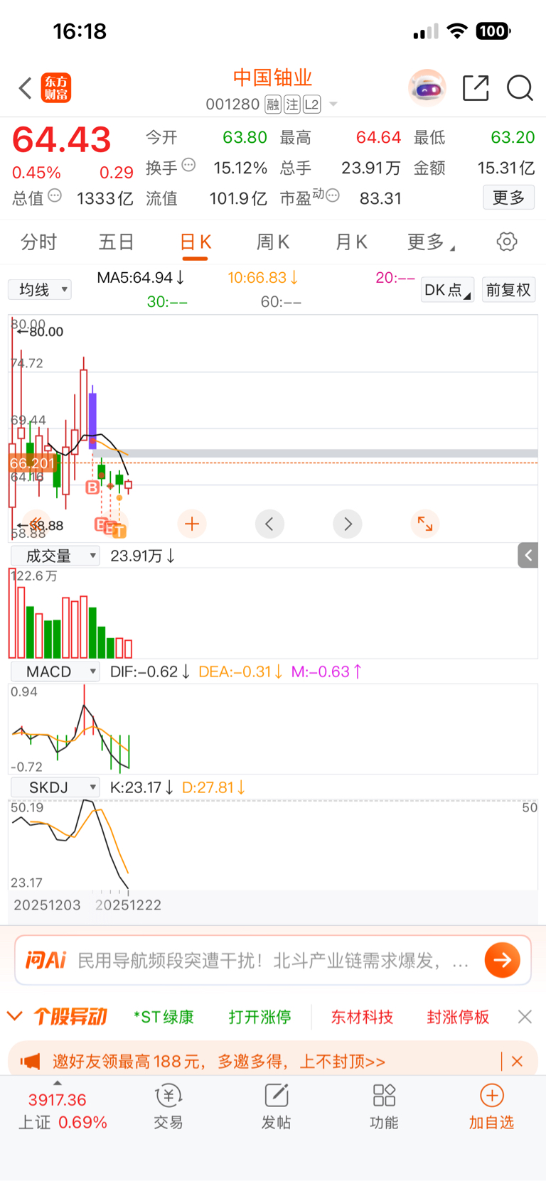 $中国铀业(SZ001280)$ 听说明天要涨的头晕目眩