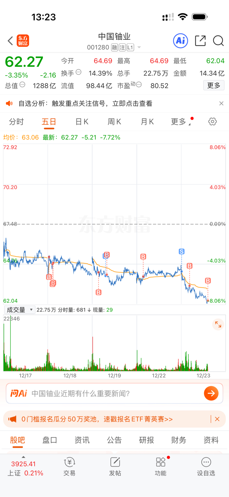 $中国铀业(SZ001280)$ 兄弟,不带这样吧?