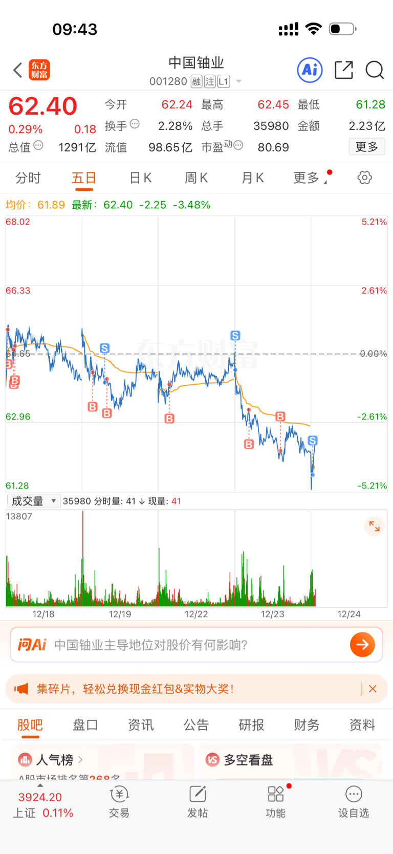 $中国铀业(SZ001280)$ 我走了,你该涨了