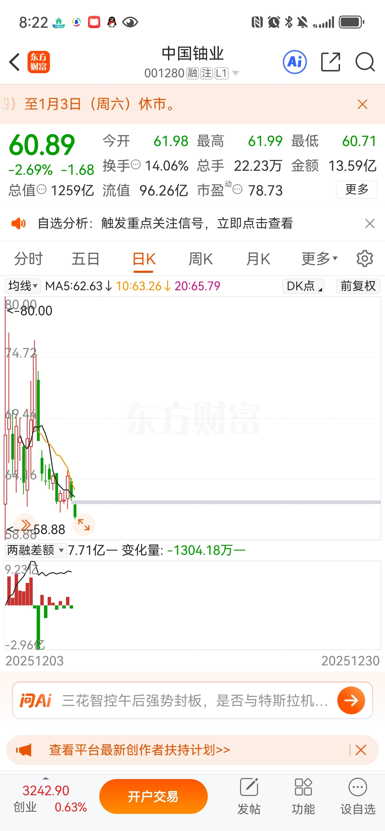 $中国铀业(SZ001280)$ 截至2025年12月31日,中国铀业总市值约1259亿元 。结合业绩增长、估值修复与分部价值,其市值上涨空间可按短/中/长期划分