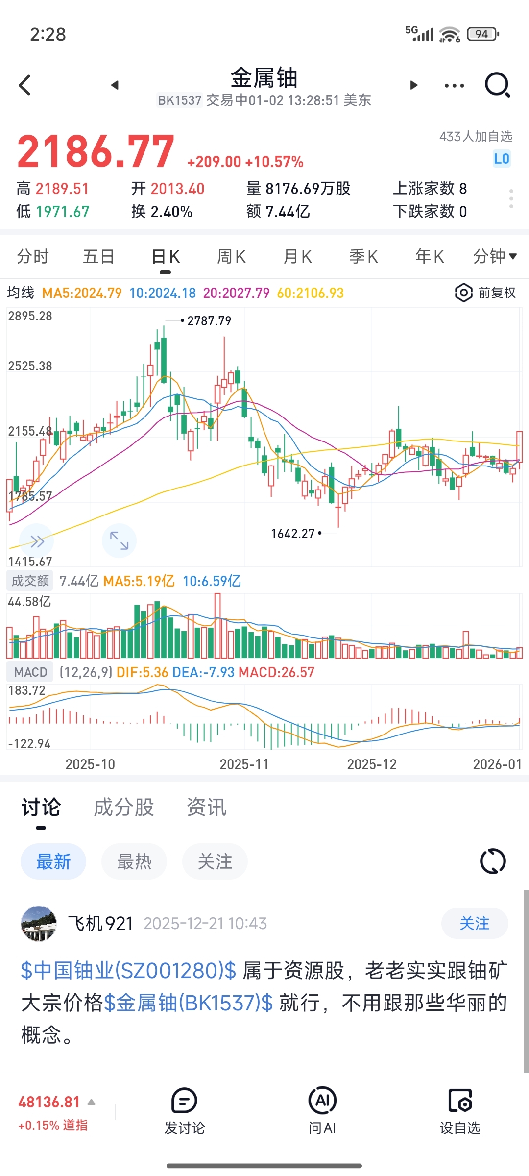 $中国铀业(SZ001280)$ 疯了吗?